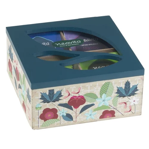 Cofanetto legno BIO AZZURRO 4 scomparti 20 tisane assortite Neavita