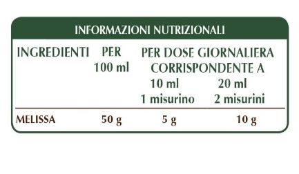 Glicerina vegetale bidistillata, acqua pura, melissa (Melissa officinalis) foglie.